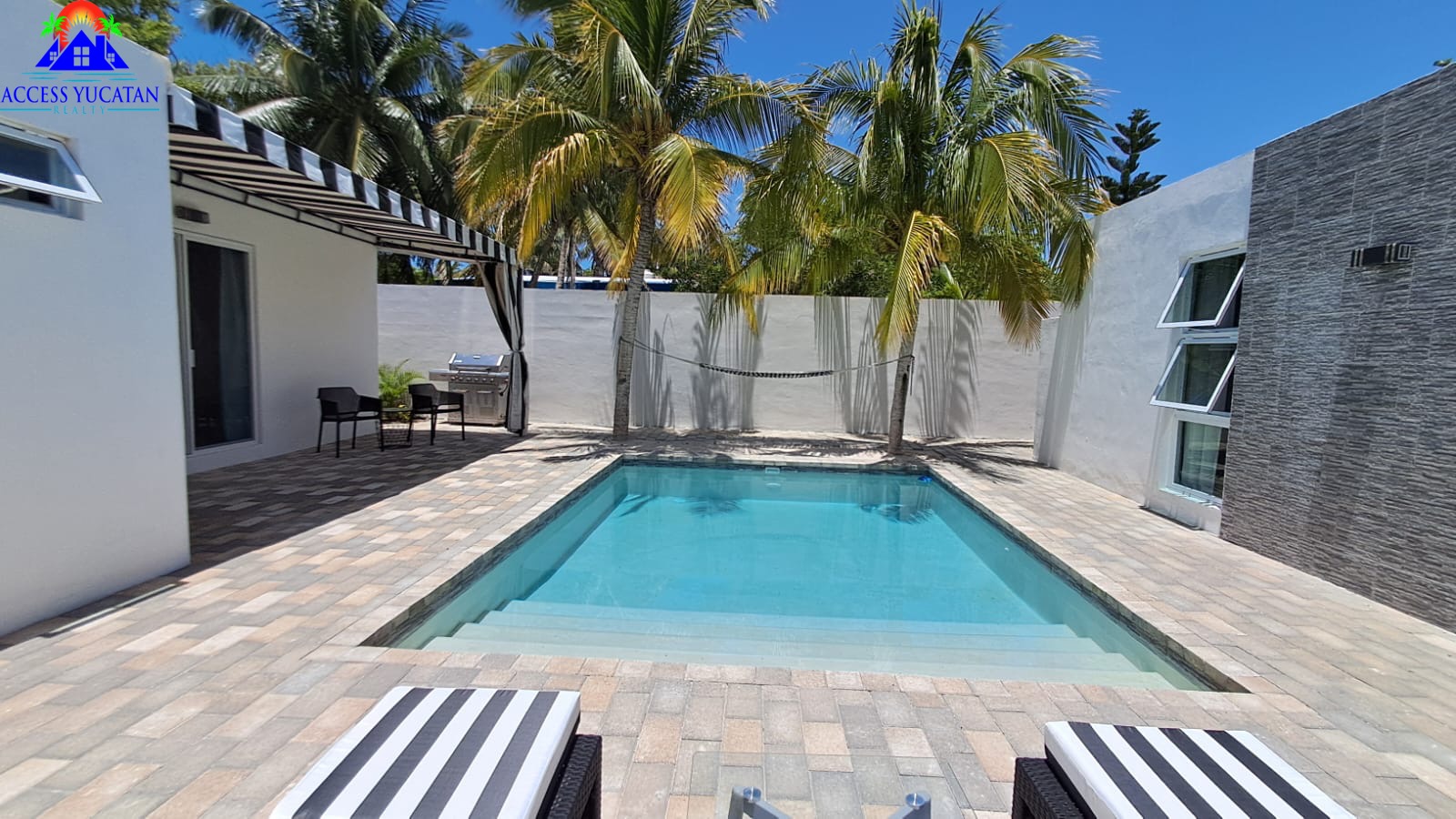 THIS STUNNING PROPERTY IS ONLY A SHORT WALK TO THE BEACH AND IS BUILT FOR THE MOST DISCRIMINATING BUYER. THE MAIN HOUSE FEATURES HIGH CEILINGS, 2 BEDROOMS BOTH ENSUITE, A GUEST BATH ACCESSIBLE FROM INSIDE AND OUTSIDE, LAUNDRY ROOM, LIVING ROOM, DINING ROOM, LARGE KITCHEN WITH ISLAND AND GRANITE COUNTERTOPS A/C THROUGHOUT. ALL NEW APPLIANCES AND FURNISHINGS INCLUDED, MOVE IN READY. IT HAS A FILTERED POOL, WELL AND CITY PRESSURIZED WATER WITH SOFTENER AND A COVERED PORCH AREA COMPLETE WITH HAMMOCK AND GAS GRILL. THE CASITA IS WELL APPOINTED WITH A/C, A FULL KITCHEN, LIVING AREA AND BEDROOM, BATH ALL FURNISHINGS. THIS PROPERTY IS STREET TO STREET ACCESSIBLE, COMPLETELY WALLED, GATED AND TASTEFULLY LANDSCAPED WITH IRRIGATION SYSTEM. IF YOUR LOOKING FOR A LUXURY BEACH HOUSE WITH PLENTY OF ROOM FOR FAMILY AND FRIENDS, THIS IS IT. LISTED AT $399,900 USD FOR MORE INFORMATION OR TO SCHEDULE A VISIT DM ME ON FACEBOOK OR CONTACT ME TOM STEC ON WHATSAPP +52-999-493-5066 VISIT OUR WEBSITE: ACCESSYUCATAN.COM